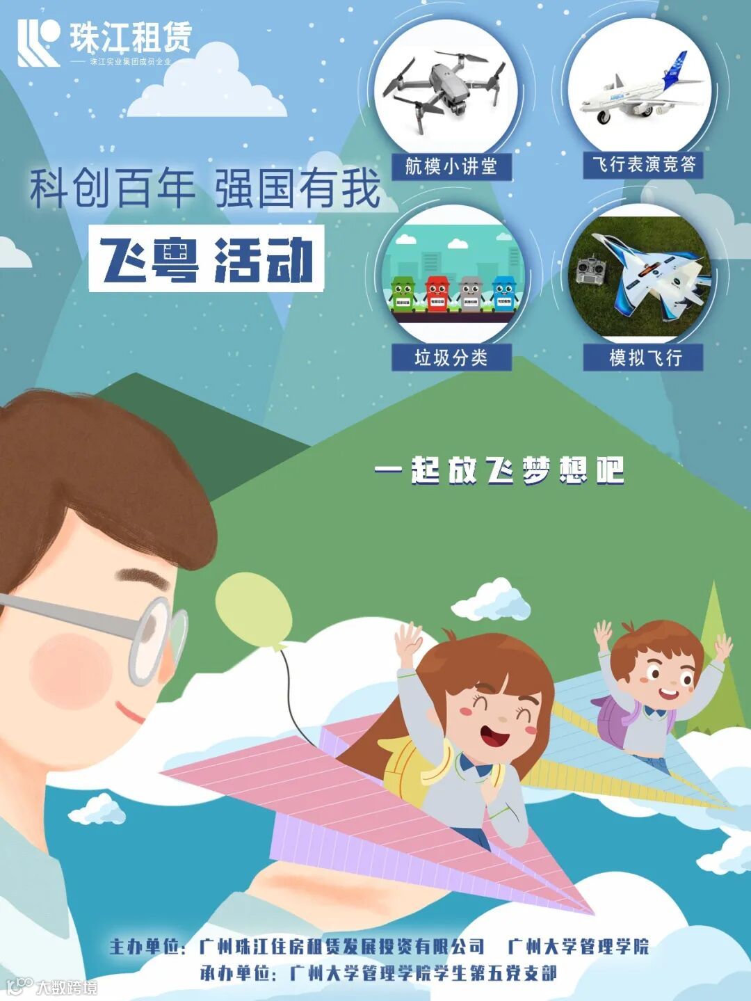 7月30日,珠江租赁公司联合广州大学在保障房小区启动“飞粤计划·筑梦航天”航模科普教育系列活动,以实际行动践行党史学习教育部署要求,立足为保障房小区群众办实事、办好事,通过开展丰富多彩的主题活动,关心保障房小区青少年成长。