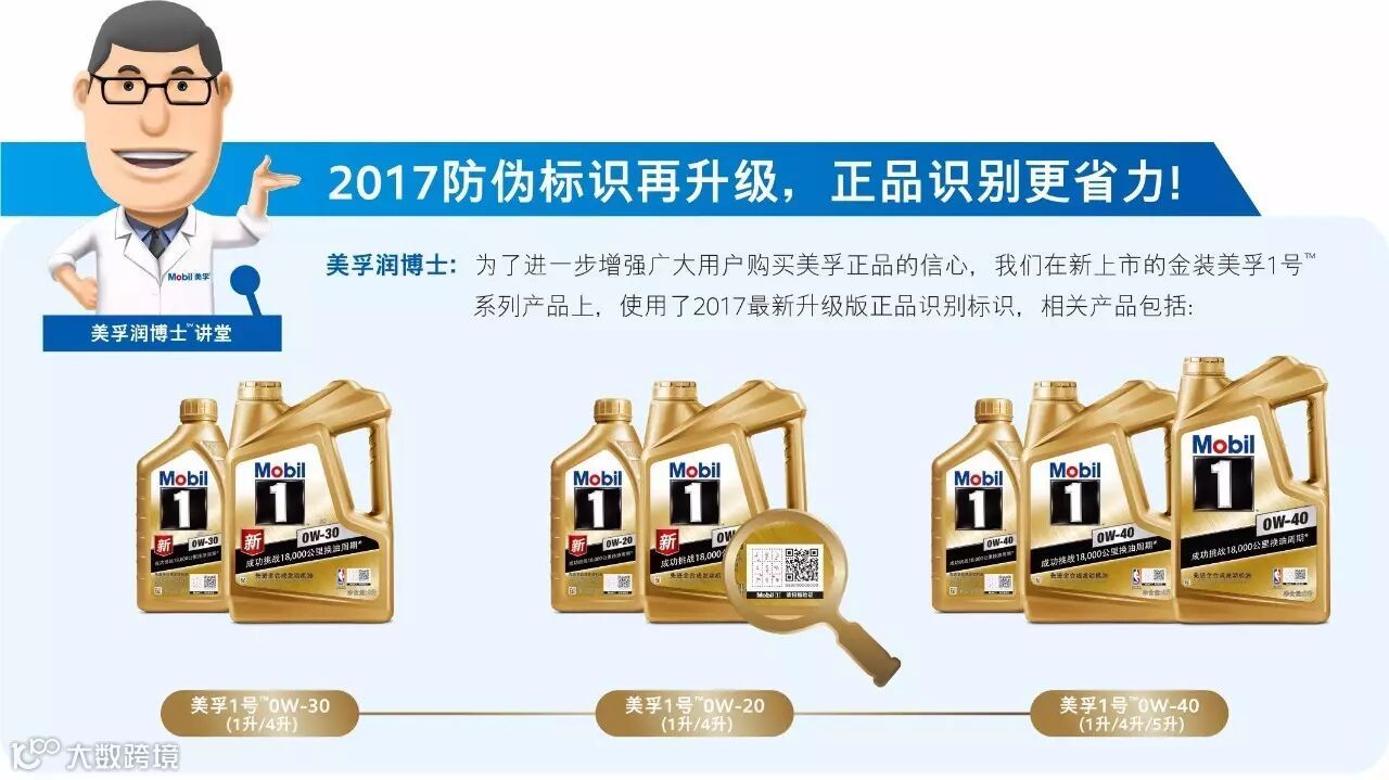 今年,美孚将会逐步在所有中国产品上更新二维码识别标识,全方位保护信赖喜爱美孚产品的广大消费者。希望能更好的帮助大家识别市场上的正品美孚,杜绝假货。