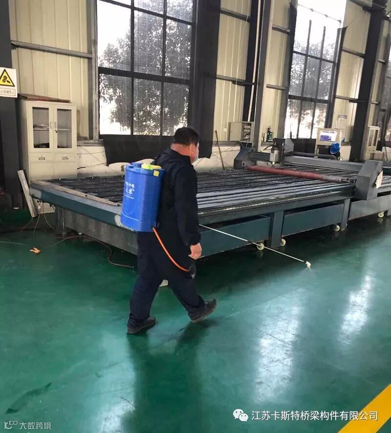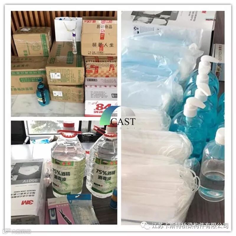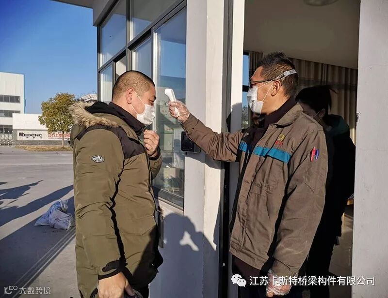 卡斯特桥梁于2月10日开始正式复工生产,公司在复工前按照政府相关要求对各方面做了充分的准备,及时备好疫情所需的防护及消毒用品,严格落实防控措施,保障员工的健康安全。在复工期间每天为员工测量体温并及时记录相关情况,全面开展对生产、作业场地及食堂等人员集聚区域的消毒工作,提醒员工做好个人的防护和消毒,严格落实个人防护措施。