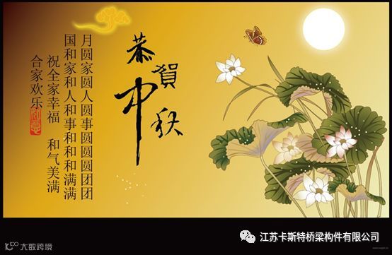 “今夜月明人尽望,不知秋思落谁家?”。在这丹桂飘香、秋色迷人的美好时节,我们即将迎来中华民族传统佳节——中秋节。值此佳节来临之际,请允许我代表公司总经理纪小烨先生向我司辛勤工作在各个岗位的全体员工,以及一直以来默默支持公司发展的新老客户们致以最真挚的节日问候和祝福,祝您:人圆,月圆,亲朋团团圆圆!官源,财源,事业左右逢源!人缘,机缘,好运缘缘不断!心愿,情愿,理想天随人愿!祝您中秋节快乐!