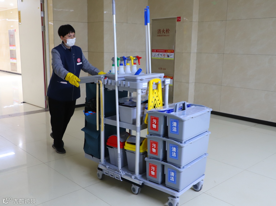 “在医院做物业工作和社区、商场相比更加专业,需要格外的严格与规范。”刘晓鹏向我们介绍,“随着医疗机构对后勤服务需求的逐渐多元化,医院后勤服务包含内容也越来越多:消毒隔离,防护工作,医疗垃圾分类标识、收集、包装、清运、处置,中央物流运送衔接调配工作等等都在我们的责任范围内,而我们的服务标准也是越来越高的。比如:医院的毛巾需要分区域,污染区、半污染区、清洁区,每一块毛巾可以使用的范围,擦多少地方,都有要求;再比如日常消毒液配比、多重耐药消毒药配比、有疑洒物或病人体液区域的消毒液配比都有不同;擦拭消毒也会有要求,从高到低,由里到外,从清洁到污染,出院消毒,周末消毒,方方面面都会注意。”