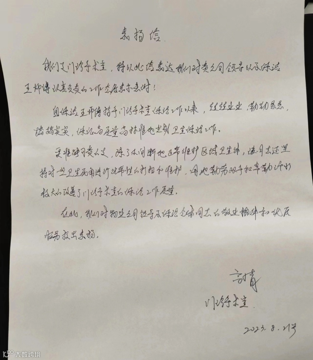 | 东胜物业医疗事业部再收邢台市人民医院表扬信