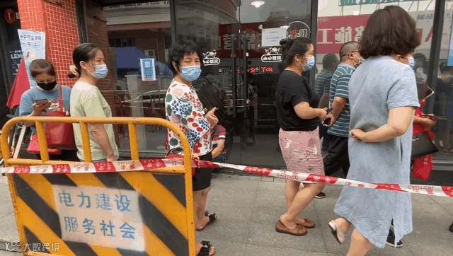 下午时分,受检群众早早地来到广场支持抗疫工作,有序地排起了检测队伍。