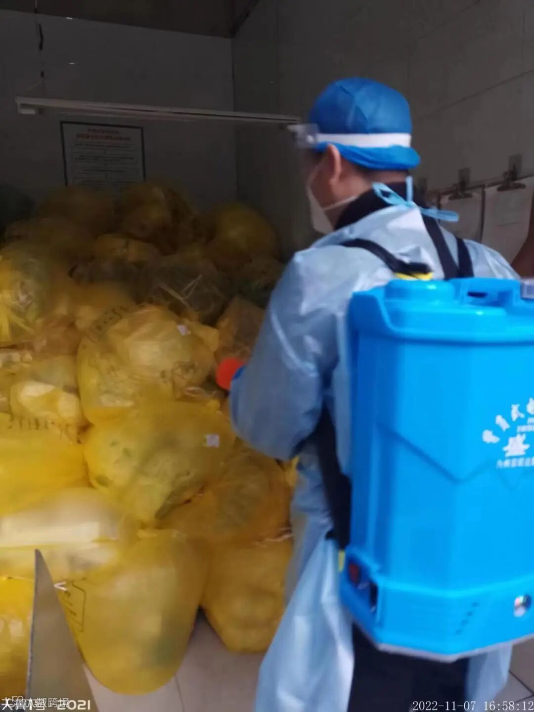 在河北医科大学第二医院,东胜物业主要承担起院区病区隔离封控,医疗垃圾清运,日常保洁消杀,感染病区消杀,密接、核酸阳性者转运全程消杀跟随工作,服务中心项目经理李宁以项目为家,从10月30号开始驻守医院至今,保障现场响应,迅速应对。他每日睡眠不足四个小时,深入一线严格布控防疫服务举措的同时,统筹保障在岗人员落位与安全。