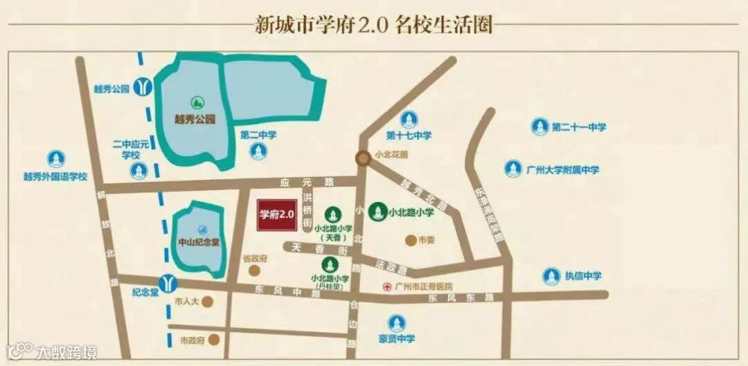【新城市·学府2.0】被小北路小学(越秀第一梯队小学)、市二中、执信中学、广大附中、省实等众多重点学校包围,多年对应小北路小学招生范围,小升初又对应市二中等广州名校!