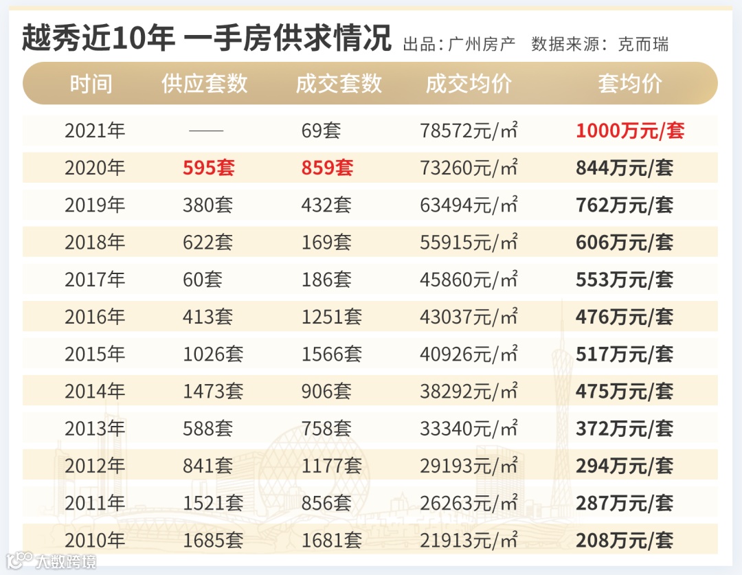 越秀区近十年来一手房供不应求