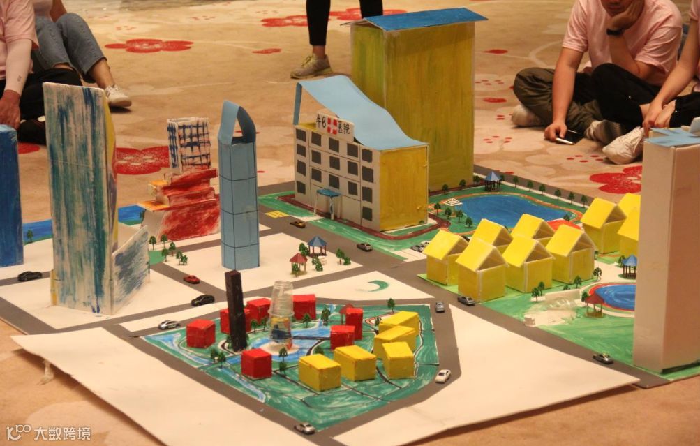 按照上午的分组,四个小组领取到了不同的建造任务,分别是住宅小区、大学城、金融高新区和医院,每队成员需要根据相同的物料,在相同的时间里完成各自的建造任务。