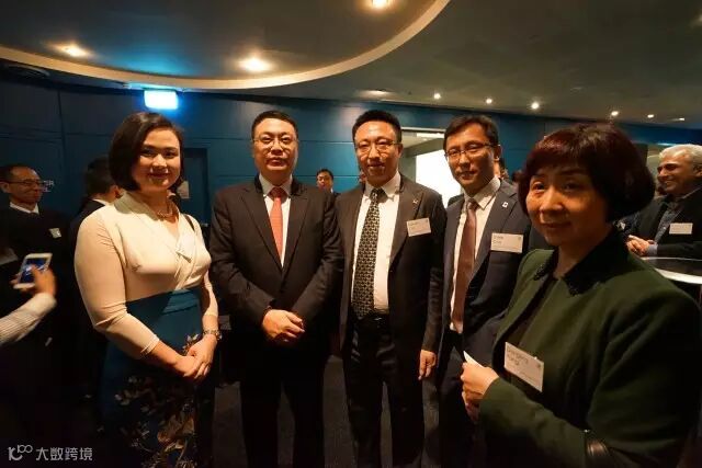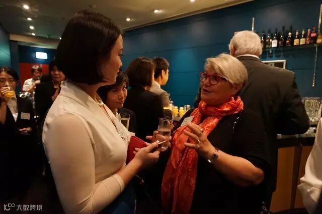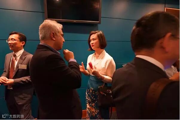广州-悉尼经贸交流推介会的晚宴中,新城市发展集团(澳洲)董事秦一文与海外公司负责人的交谈