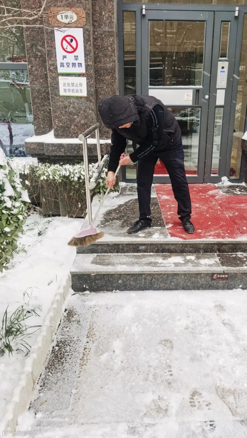然而在大雪纷飞的天气中,最亮丽的景色,却是那些在雪中忙碌的身影。为全力保障业主出行安全,东胜物业各项目工作人员迅速组织铲雪除冰行动。