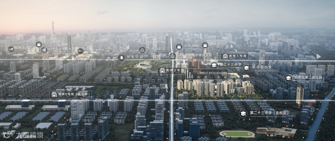 东胜·天御,择址一环内城十字轴芯,处于都会与自然的平衡点之上,左手享受城市中央公园,右手链接城市最前沿的商务天际线。