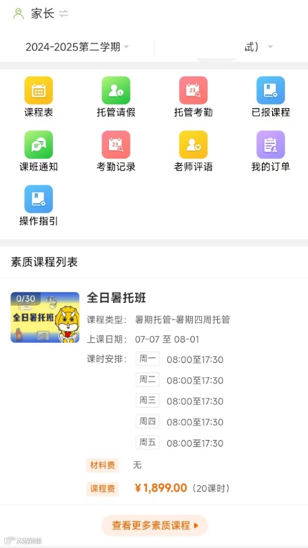 或进入【托管学堂】,点击【报读课程】,若出现已缴费的课程,则代表成功报课。