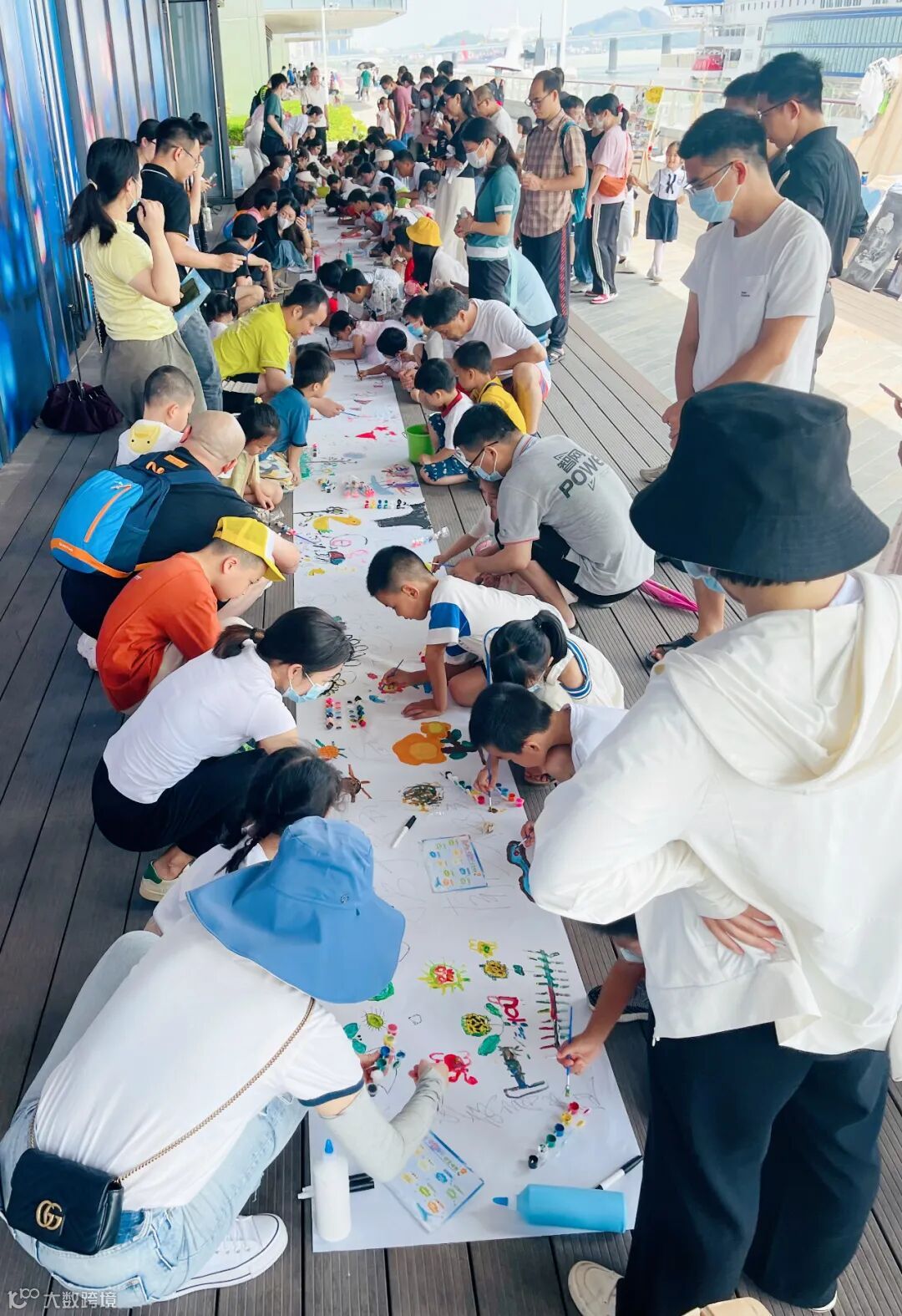 在教育联展的主会场——中交·国际邮轮广场,嘉宾们共同于画卷上题写了对南沙的美好祝愿,观海长廊百人画卷写生活动人头涌动。