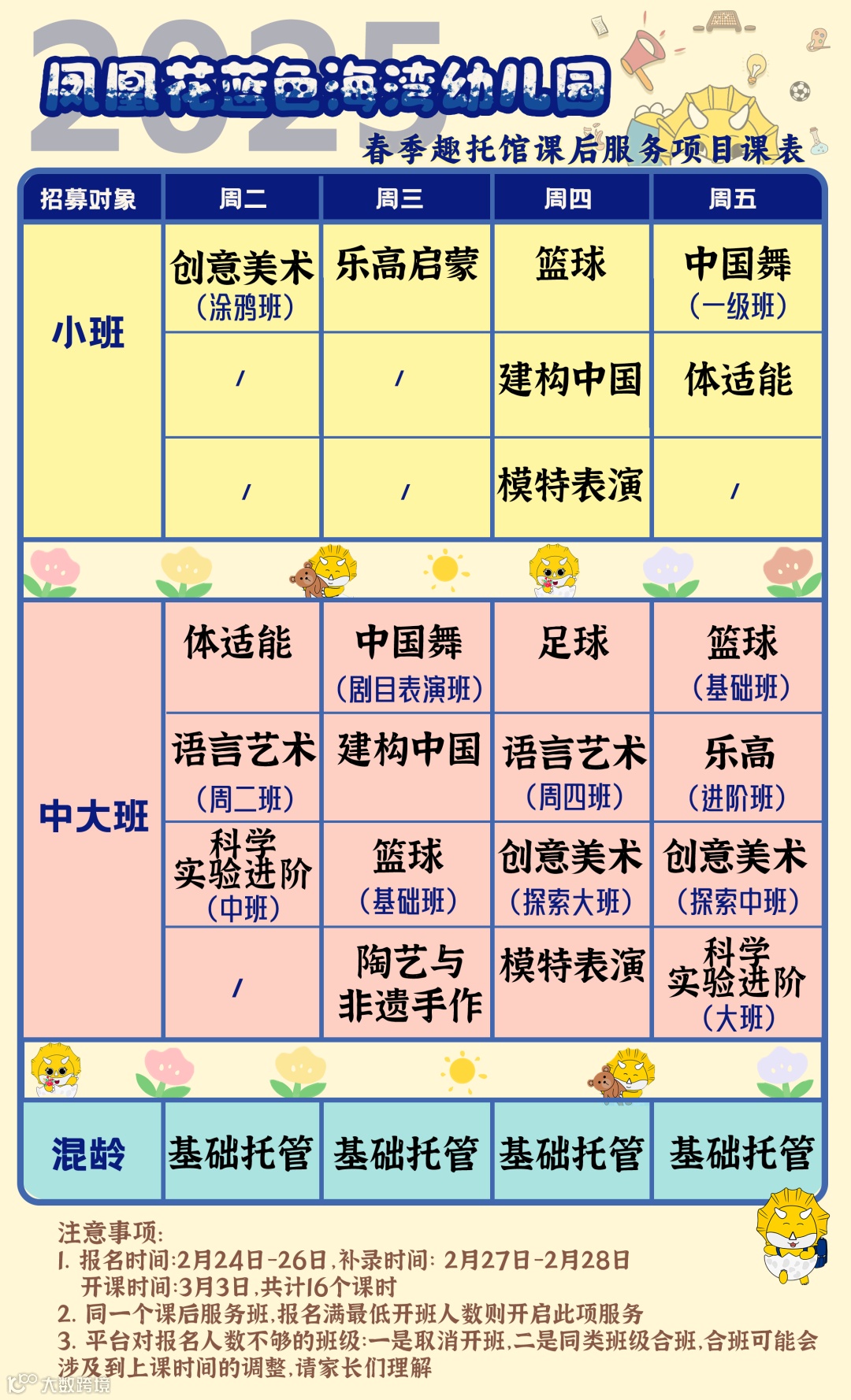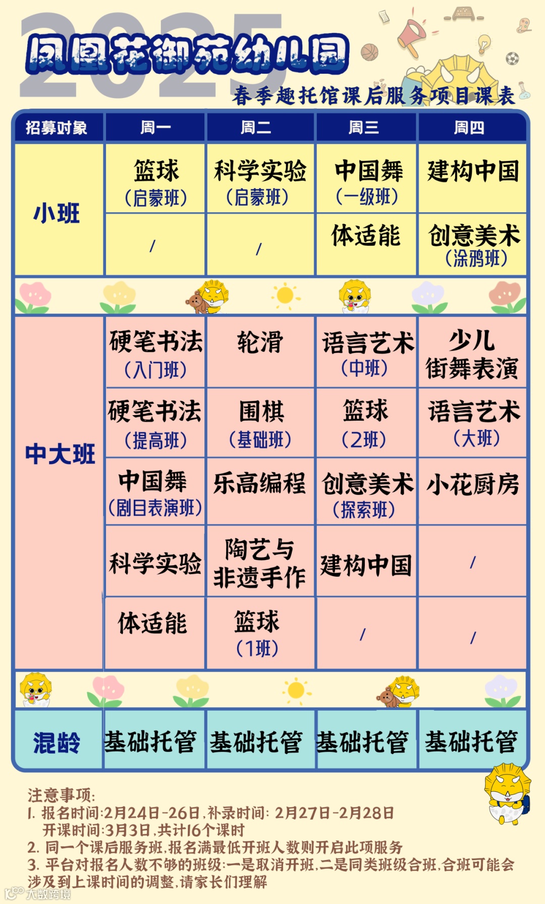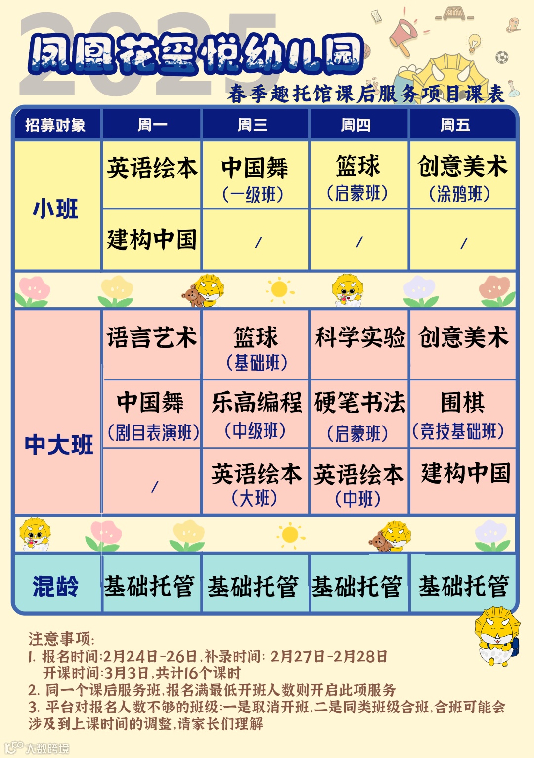 (2)如遇同等课程不足开班人数,将优先合班教学。