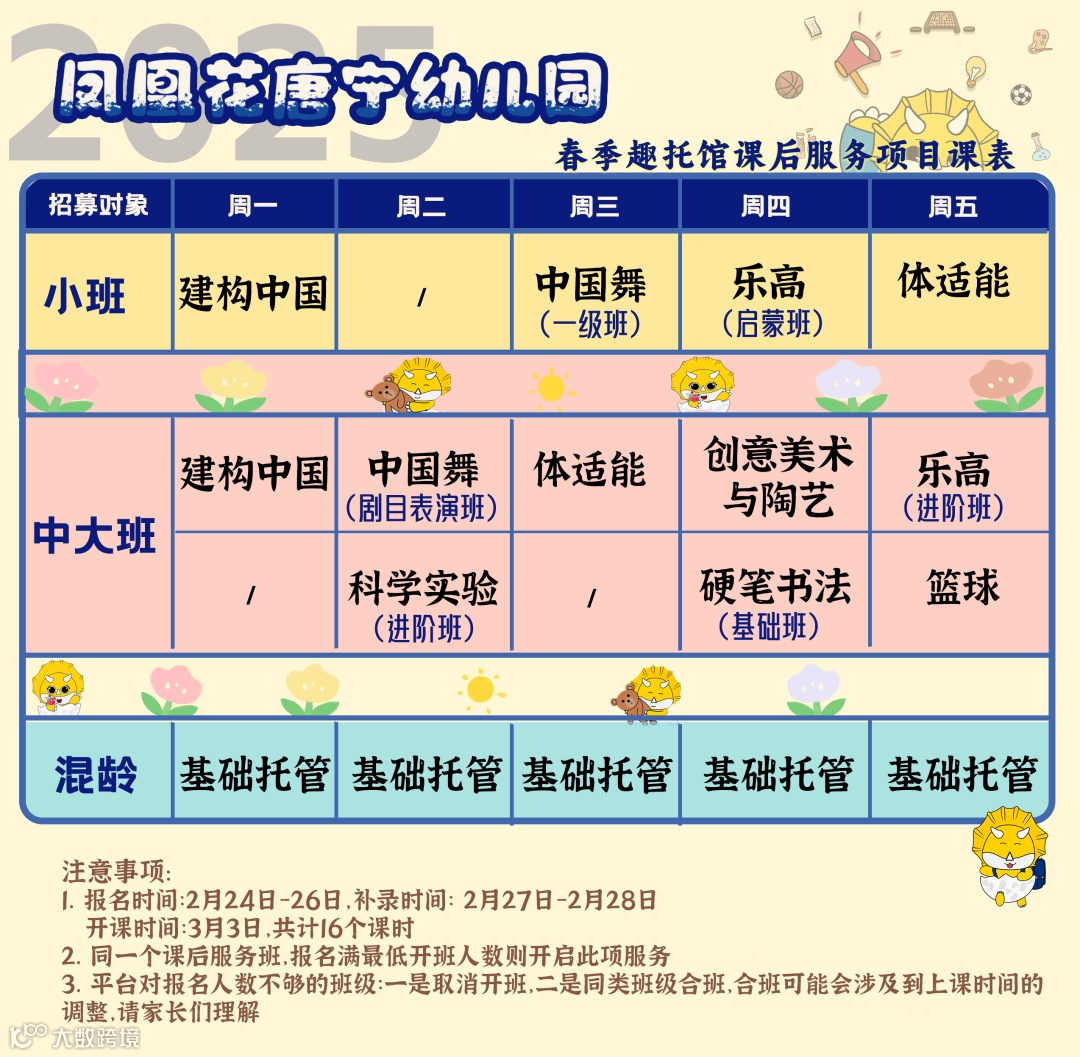 您好!为满足幼儿课后服务需求,帮助家长解决实际困难,我校春季学期将继续开展课后服务,现将相关报名事宜告知如下: