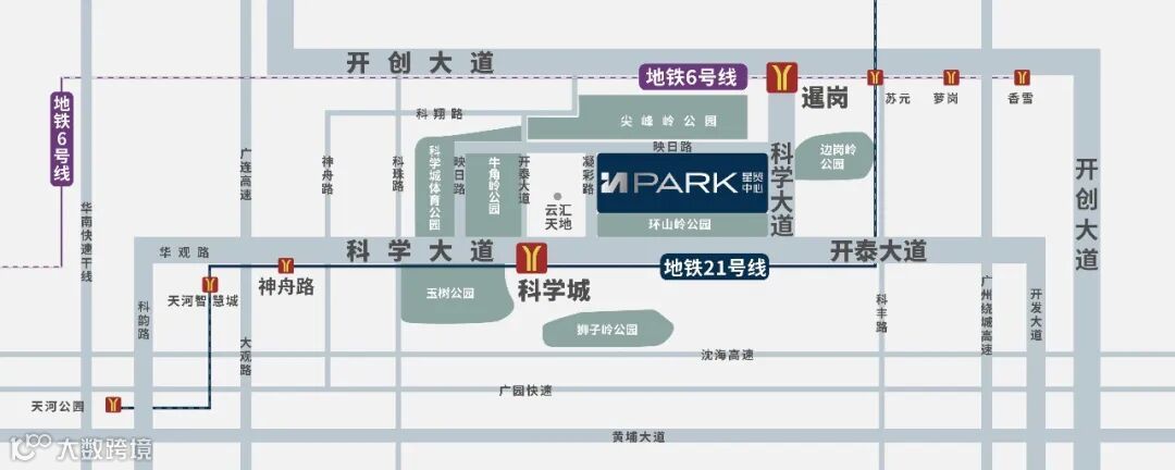 清晨8点,你从容端起咖啡,俯瞰科学大道车流如织。双地铁(21号线科学城站、6号线暹岗站) 环绕,约500米即达。迅捷连接全城,约30分钟速达广州核心商圈,广佛深1小时生活圈触手可及。