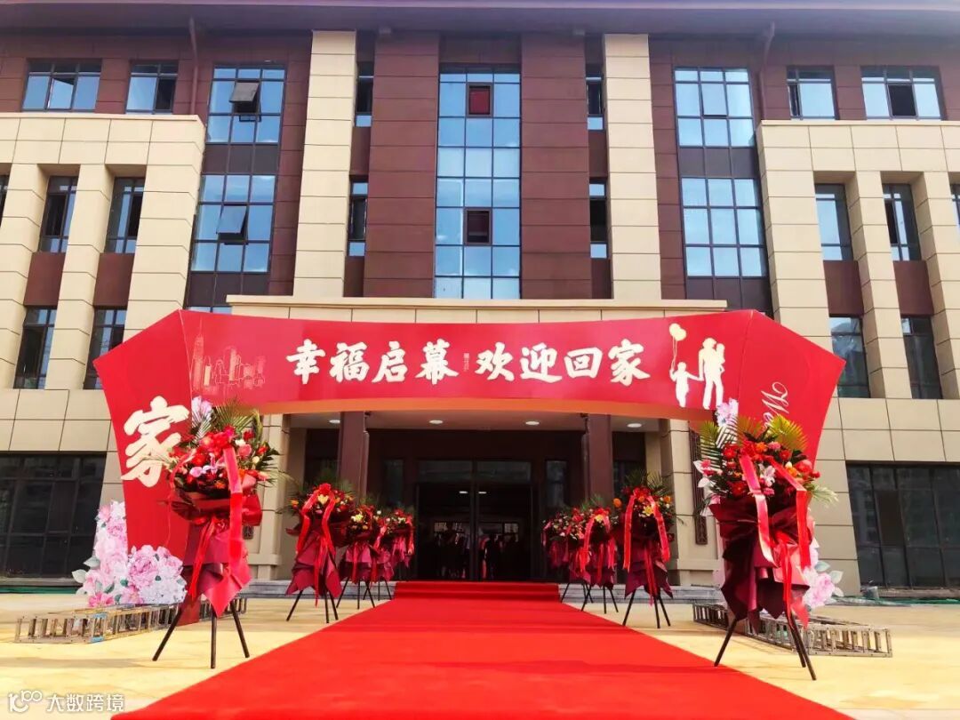 “幸福启幕 欢迎回家”八个大字醒目热烈