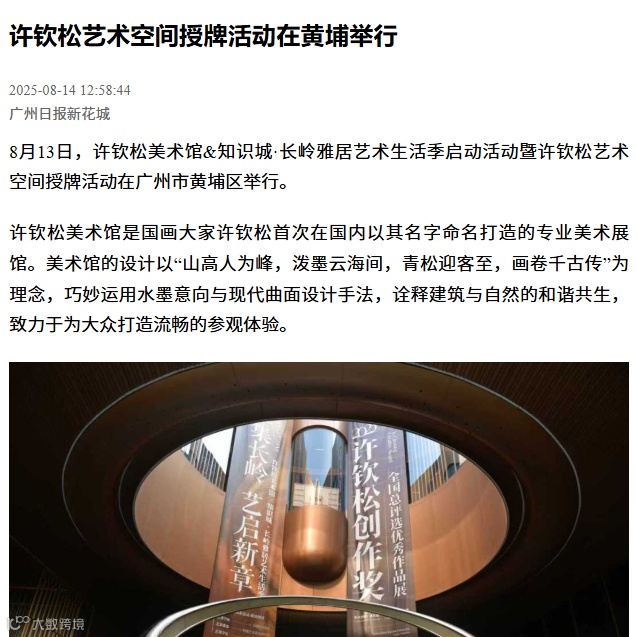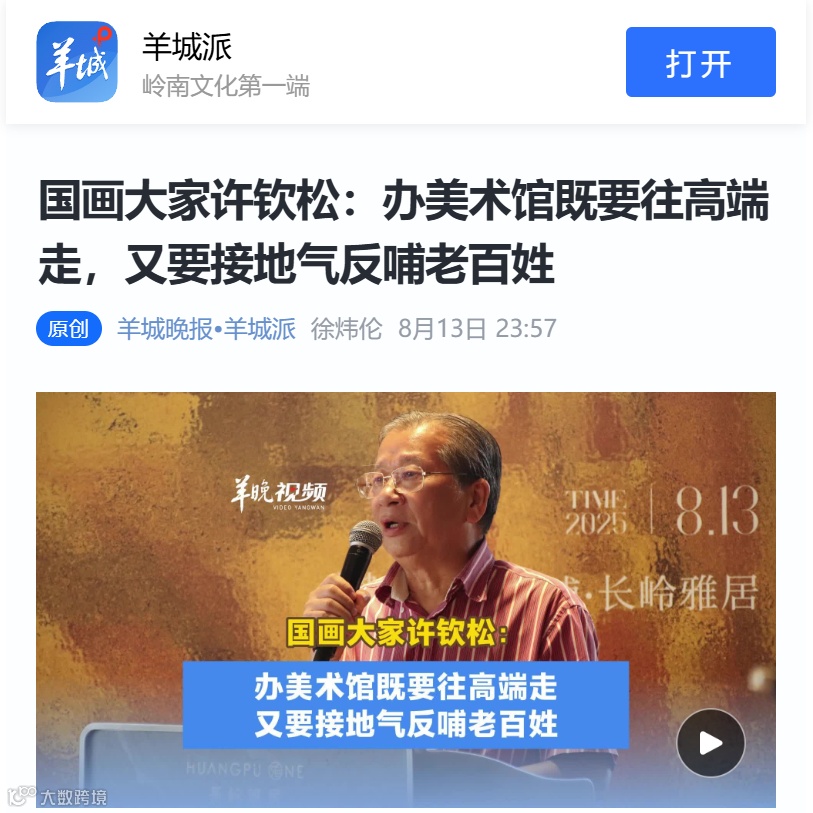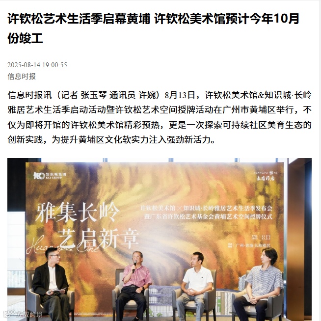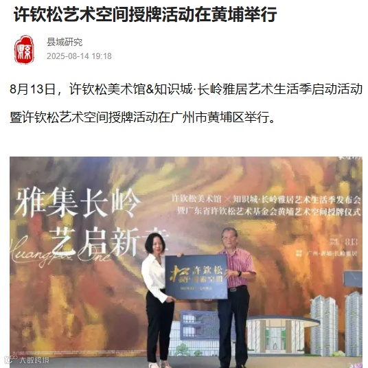 8月以来,知识城集团·长岭雅居艺术生活季正式启动,已成功举办“何以为家”2025许钦松创作奖优秀作品展、雅居艺术生活季启幕暨许钦松艺术空间授牌等系列艺术活动,收获社会各界热烈反响与一致好评。