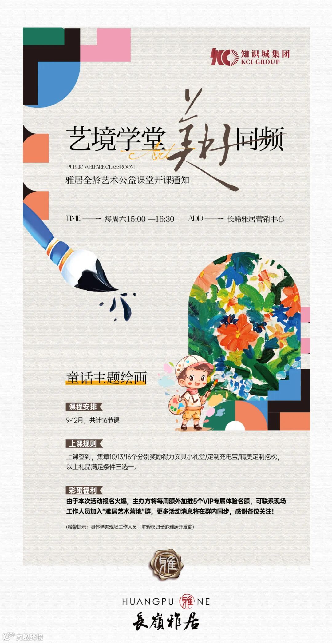 作为广州东部首个艺术社区,长岭雅居围绕 “艺术展”、“艺术沙龙”和“公益课堂”三大核心方向,落地艺术剧本游、全龄艺术公益课堂等特色活动,不断丰富社区艺术生活场景。