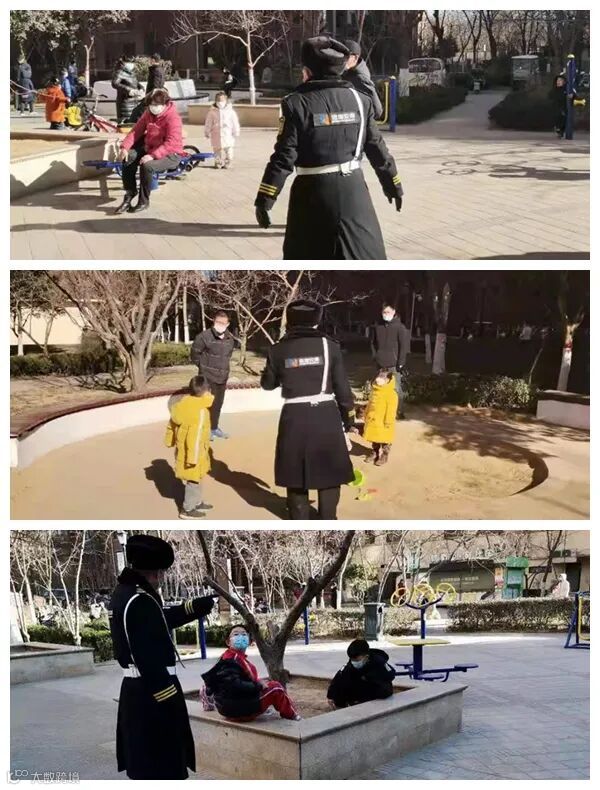 阳光虽好,但是时机不对。秩序维护部的工作人员将园区内玩耍的业主劝回。此时所有人都应该静待家中,待到疫情过去,我们便可随意享受阳光,随心去到每一个地方。