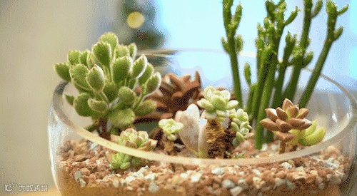 将绿意盈盈的植物,装点上彩色砂石