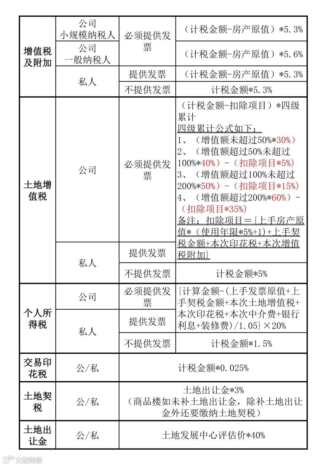 备注:出售方为私人可以不提供发票前提下,双方合计总税费为(评估价约14.8%)