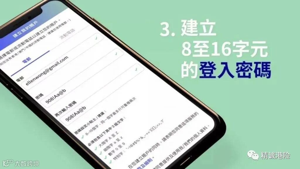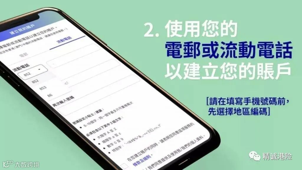 使用本人的电邮或流动电话以建立您的账户。记得在填写手机号码前,先选择地区编码。