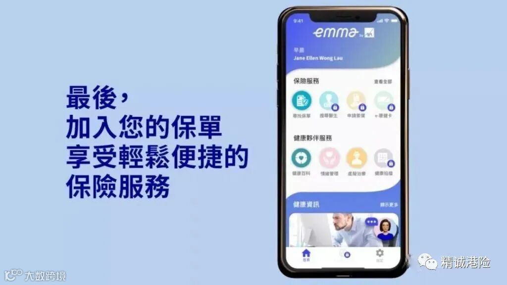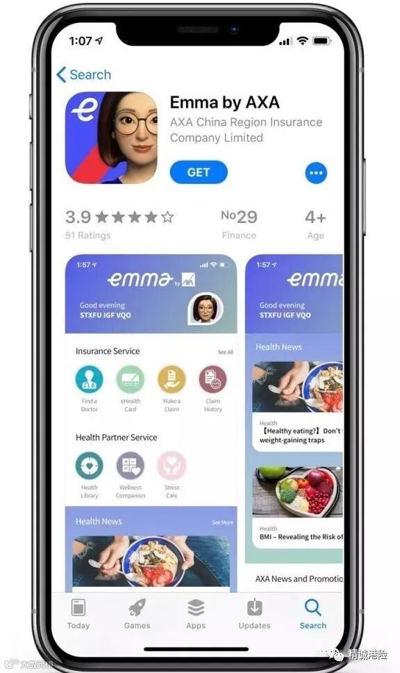 香港AXA 安盛保险专属APP服务平台 Emma by AXA ,还连同保险小助手 Emma 于 App store 商店及 AXA 安盛网页上线,让大家用手机便可随时随地体验保险服务及其他健康伙伴服务。