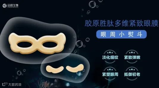 这款胶原胜肽多维紧致眼膜有两款形状,分别为大鱼眼膜和小鱼眼膜,采用了鱼鳞的外观设计,选取来自北大西洋深海鳕鱼的胶原蛋白,甄选多肽、二裂酵母等抗皱成分,提拉紧致眼周肌肤,淡化皱纹。