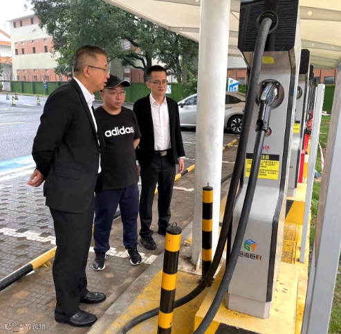 刘伟副总经理一行来到新能源产业园(燕岭)“超充一条街”,现场查看蔚来充换电一体站、巨湾技研超充站运营情况,并仔细查看清明节日园内车辆停放情况,详细了解产业园清明节应急预案、安全生产工作各项措施落实情况。
