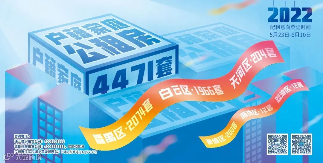 广州市2022年户籍家庭公共租赁住房(下称公租房)共4471套于5月23日起接受符合申请公租房条件的轮候家庭意向登记,于8月5日公开进行摇号预分配。