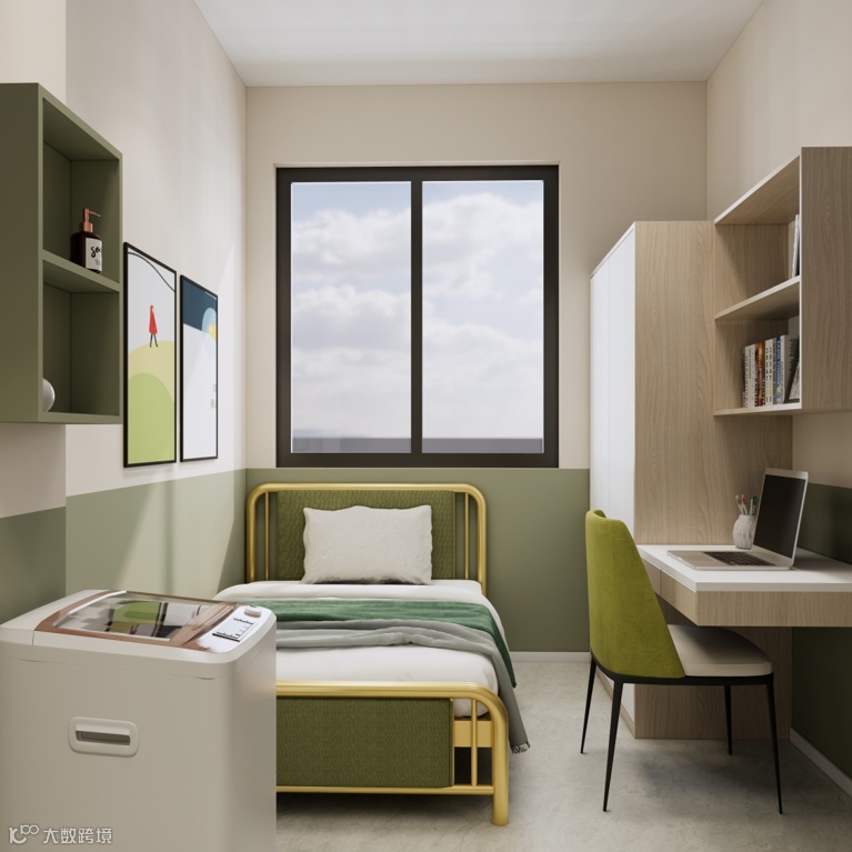 房间内配备全新家具家电,床、衣柜、书桌、空调、洗衣机、独立卫浴等一应俱全,真正的拎包入住。周边无高层建筑,视野、采光俱佳,环境舒适雅致。