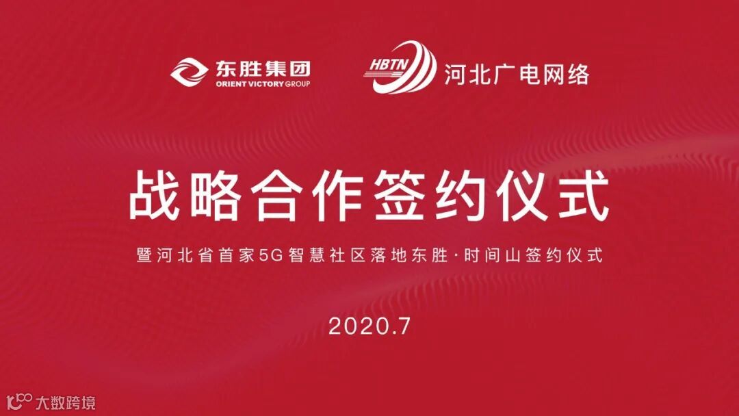 2020年7月23日,东胜集团与河北广电网络战略合作暨河北省首家5G智慧社区落地东胜·时间山签约仪式举行。双方将本着“真诚合作、优势互补、平等协商、互利互惠,多层推进、注重实效”的原则,充分发挥自身优势资源,推动东胜集团多元化产业与5G科技的深度融合,并首先将石家庄一号民生工程——东胜·时间山打造为河北省首个5G智慧社区。