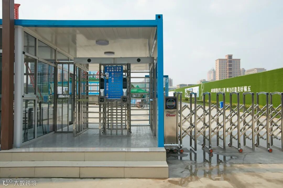 通过智能人脸识别系统走进整洁的工地入口,干净整洁的水泥路面与绿意盎然的仿真绿植相得益彰;各种绿色植物与鲜花点缀在道路两侧;办公区、生活区、施工区划分清晰,布局有序;智能机器人正在对施工工人进行安全生产知识宣传。
