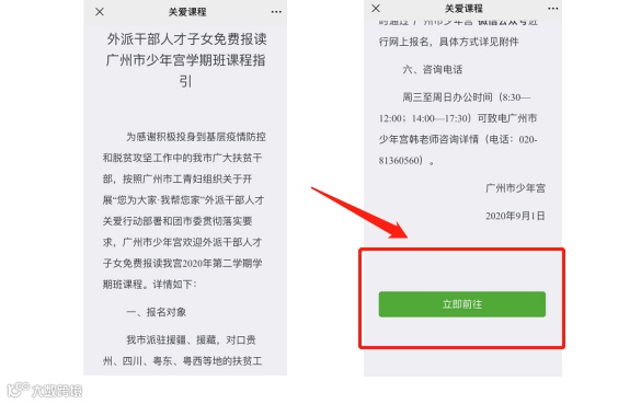 点击报名选项出现课程指引之后点击【立即前往】