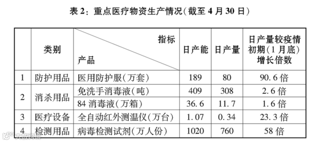 医用物资保供实现从“紧缺”到“紧平衡”“动态平衡”“动态足额供应”的跨越式提升。2月初,医用非N95口罩、医用N95口罩日产量分别为586万只、13万只,到4月底分别超过2亿只、500万只。畅通供应链条和物流渠道,建立联保联供协作机制,源源不断地把全国支援物资运送到疫情防控重点地区。