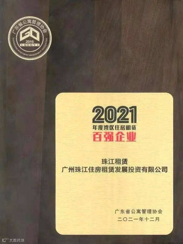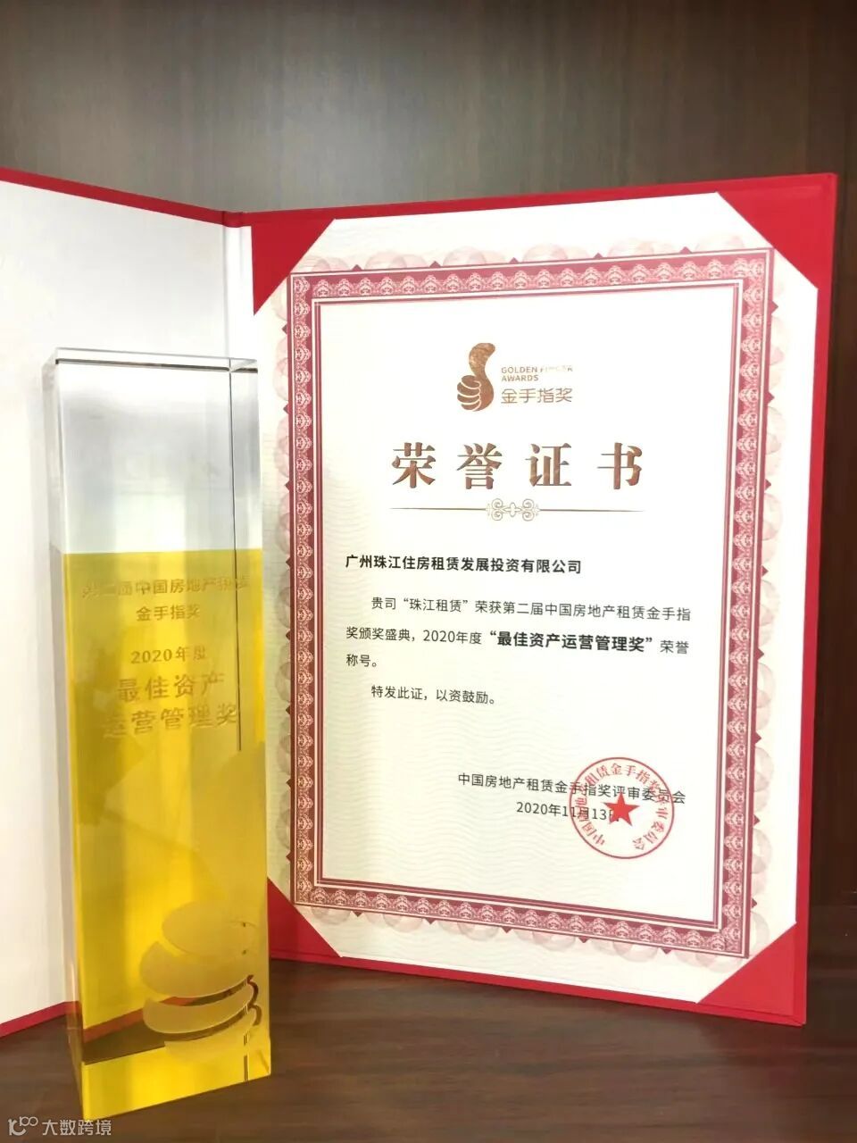 珠江租赁公司先后获得“最佳资产运营管理奖”“2021年度湾区住房租赁百强企业”“2021-2022年住房租赁行业年度践行先锋奖”等荣誉。