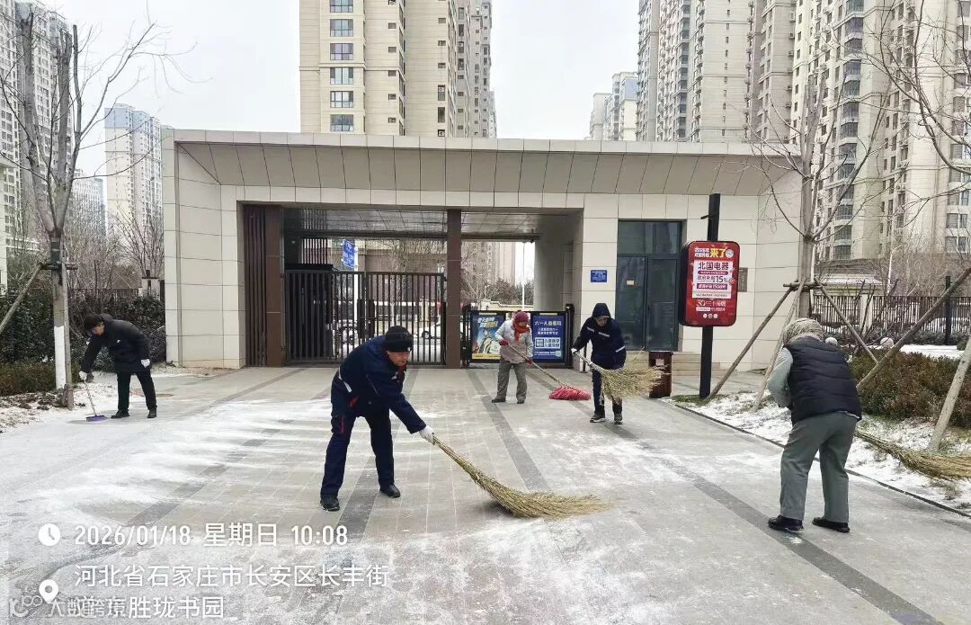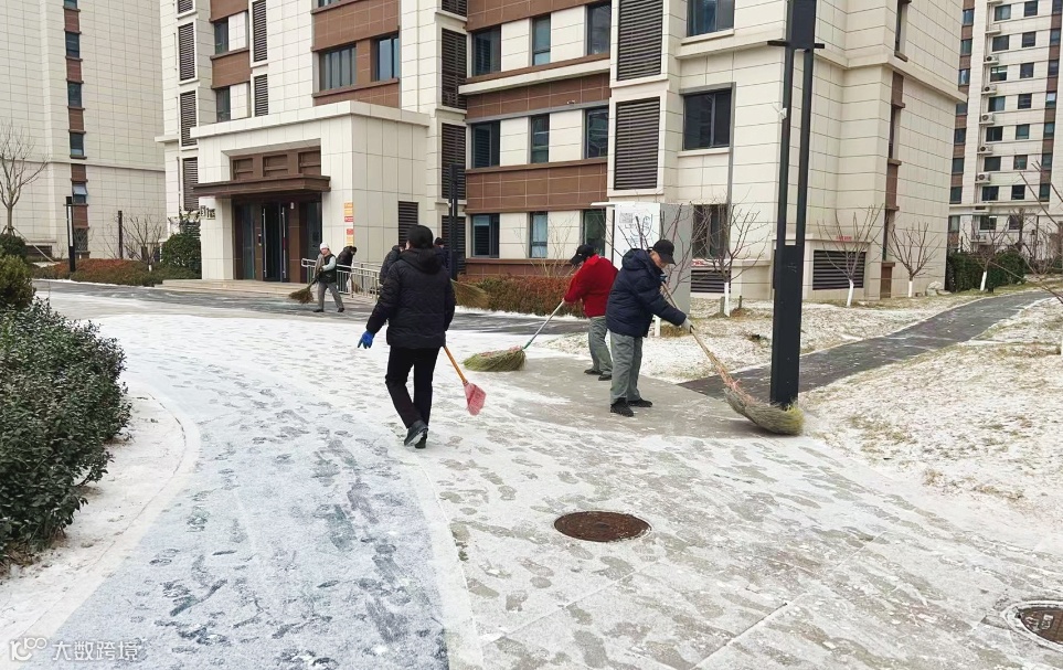 每当雪花飘落,港誉服务的应急扫雪队伍便第一时间启动预案。凌晨时分,当大多数业主还在梦乡,物业人员已经忙碌起来,动用专业设备,对主干道、单元门口、车库出入口、人行步道进行清扫和撒盐化雪,确保业主清晨出行安全畅通。除了快速清雪,各单元门口均铺设了防滑垫,并放置了“小心地滑”的温馨提示牌,细微之处尽显周全。