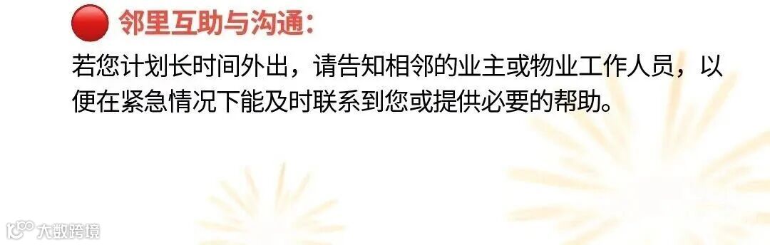 业主奔赴诗与远方,港誉物业守护家的安宁。专业团队将进行系统化安全检查:从电路电箱到水管阀门,严密排查“跑冒滴漏”风险;重点关照消防安全,将一切隐患隔绝于门外,为业主封存一份稳稳的安心。