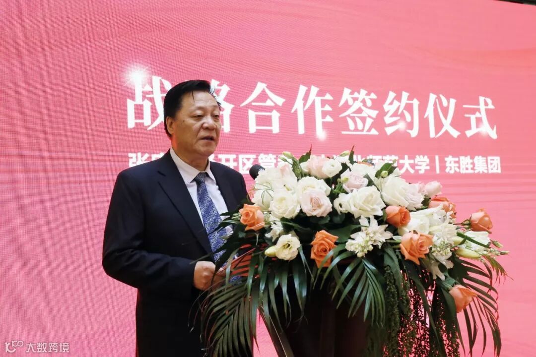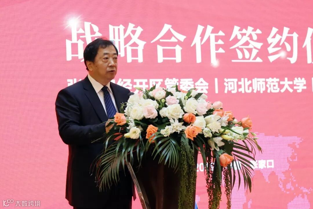 发展战略和教育优先发展战略,积极推动高层次产教城融合发展,加快教育城、健康城建设,引入中公教育国际学校、河北工业大学城市学院等一批优质教育资源,高起点规划建设了经开一小、二小、三小、一中等一批优质学校,教育发展活力不断增强,成为了张家口新的教育支撑点。此次,河北师范大学与东胜集团、经开区三方强强联合,将人才、政策、资金等资源一体化、集聚化,开启了我市公办学校合作办学的新模式,将有效填补主城区优质义务教育资源的短缺,大幅提升经开区教育教学质量,为广大群众子女上学带来实实在在的便利。希望市直各部门、经开区各单位在该项目的落地建设、运营管理等方面给予更多的关心支持,为学校快速发展提供最佳环境,力争将学校建成一所特色鲜明、优势突出、结构合理的九年一贯制学校,成为引领区域义务教育优质均衡发展的风向标、桥头堡。