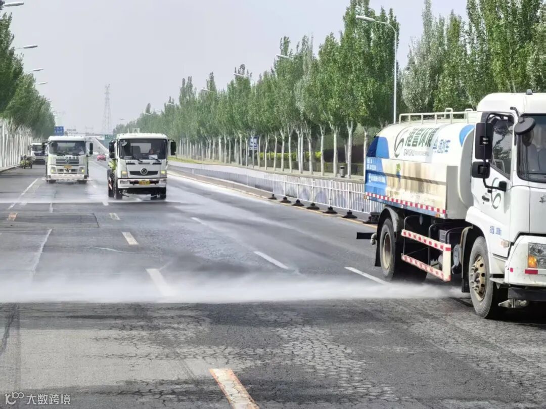 等方式,每日对清水河南路、西苑路、惠文街、外环路等主次干道进行洒水降尘、清扫冲洗。同时,以精细化保洁为切入点,加强树穴、绿化带、道路交叉口等垃圾死角清理力度,对人行道每天用高压水枪冲洗,深度清理顽固污渍,并对道路两侧垃圾桶和果皮箱进行冲洗擦拭,使之焕然一新,