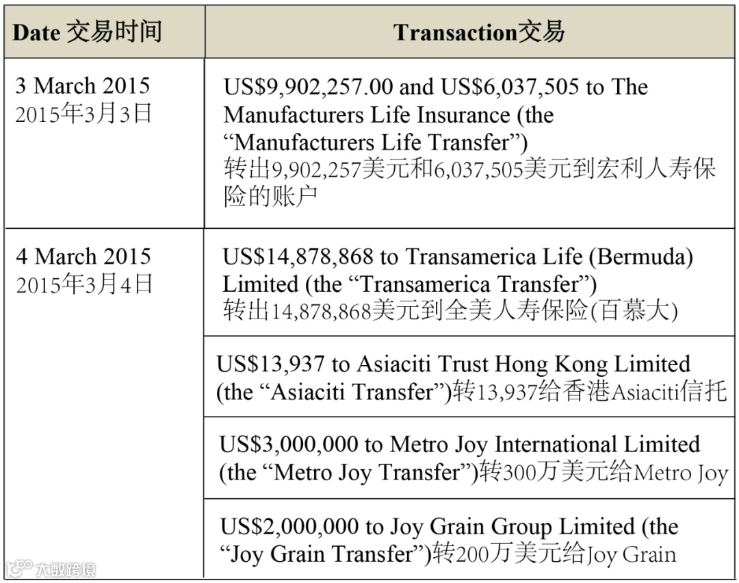 有意思的是,三笔保费3000多万美金的转账,就发生在香港法院发出资产冻结令的几天内: