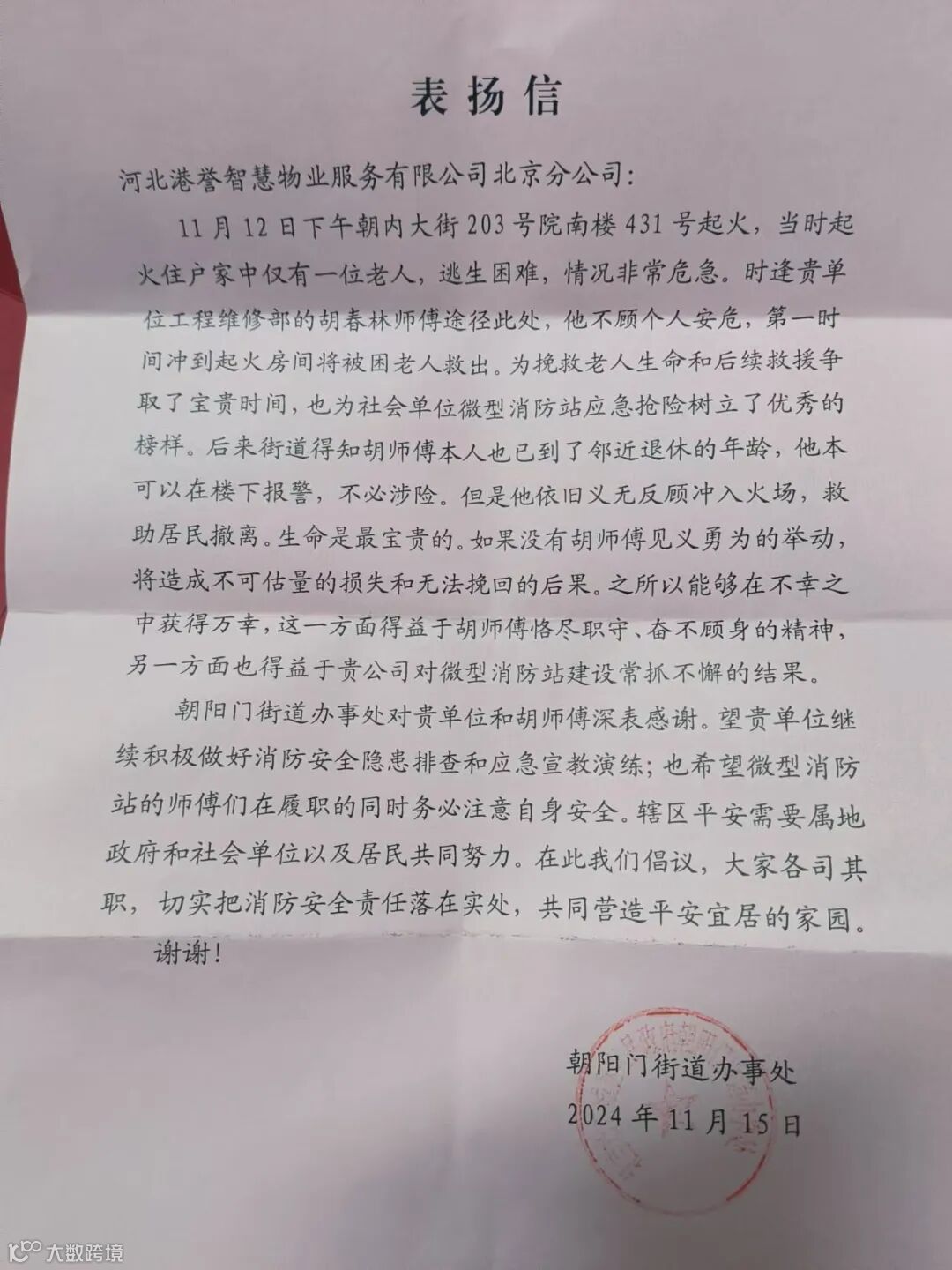 可度是一项重要标准。近期,从见义勇为事迹到优质服务表现获得合作单位及上级单位好评,一封封真情流露的感谢信、一个个鲜活的故事,是平凡岗位上的兢兢业业,是行胜于言的付出与汗水,映射出港誉物业“以人为本,服务至诚”的初心使命和对品质服务的时刻践行。