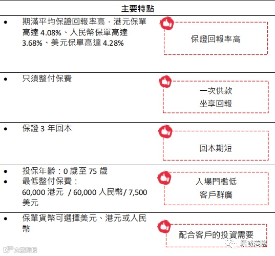 3、 希望透过短线投资赚取保证回报、兼享人寿及健康保障的客户。