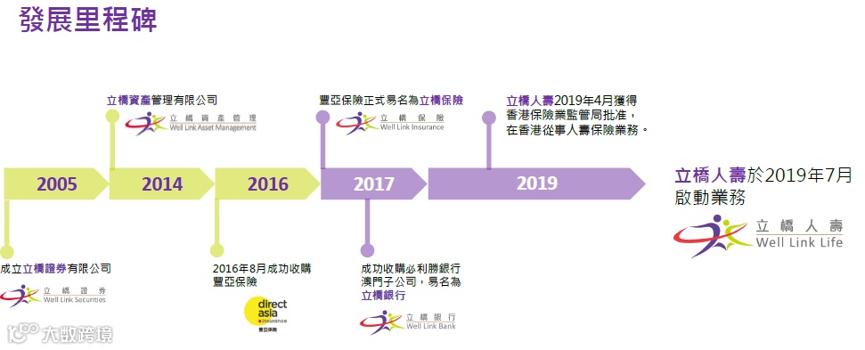2019 年 4 月,立桥保险集团旗下「立桥人寿保险有限公司」获得香港保 险业监管局批准,在香港从事人寿保险业务。