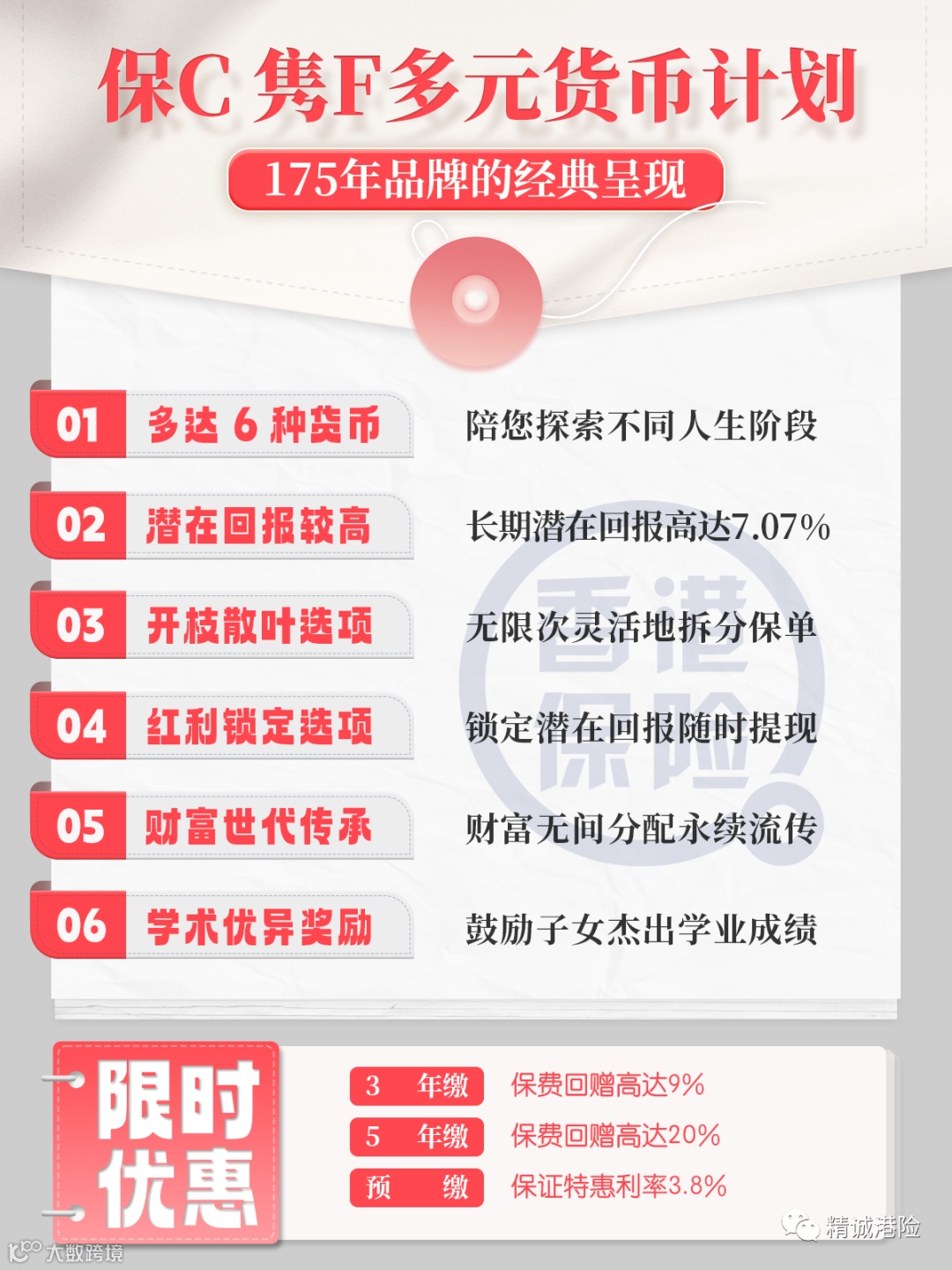 1、6种保单货币选择,配合人生需要