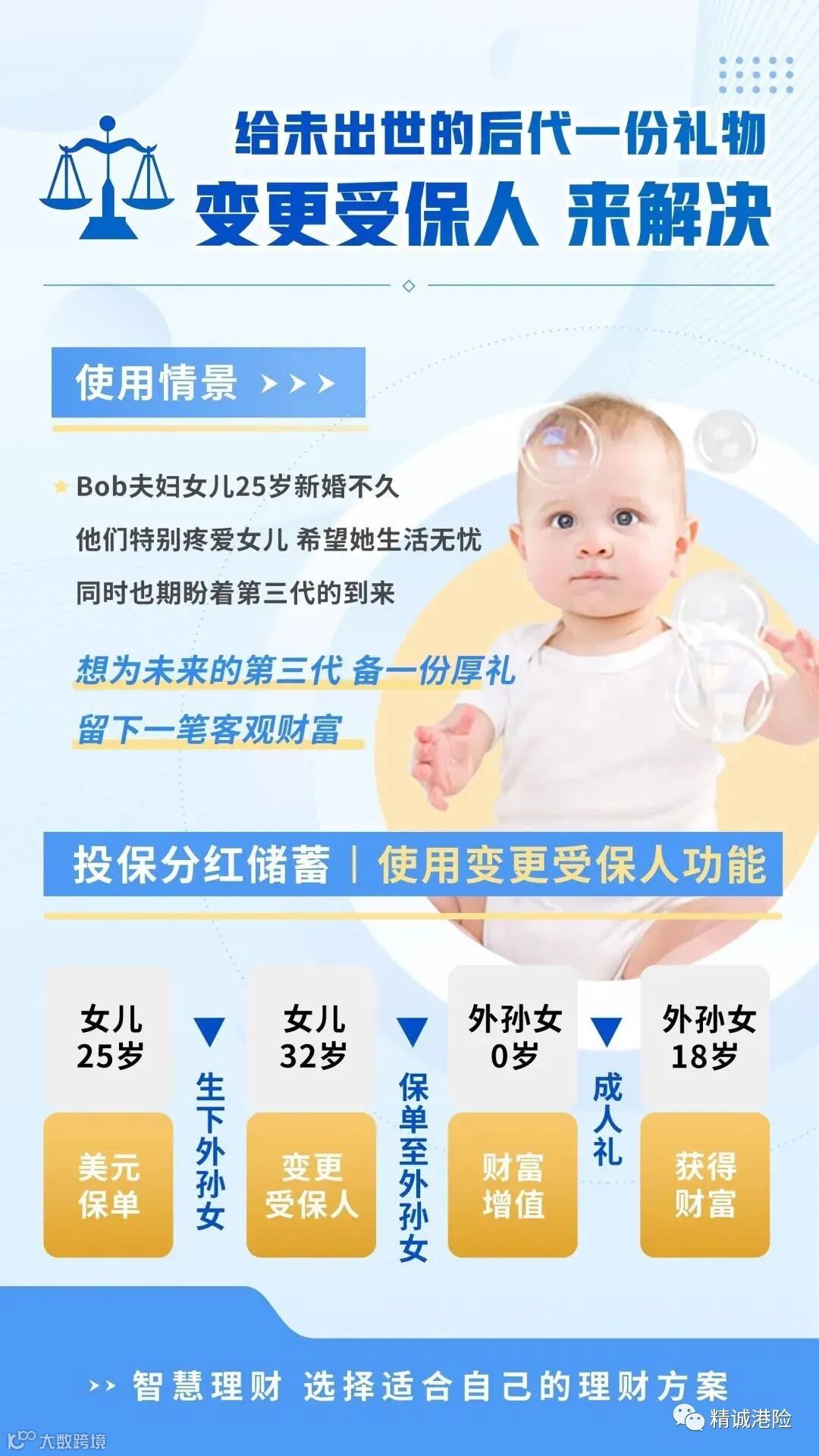 5、财富世代相传:无限次更改受保人、后备受保人、身故赔偿支付安排,确保财富永续流传。