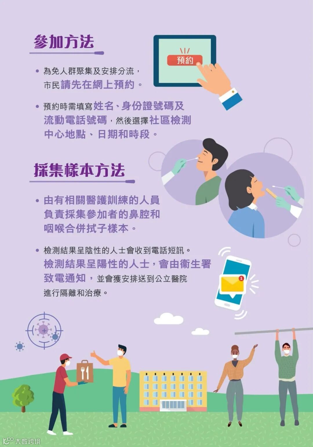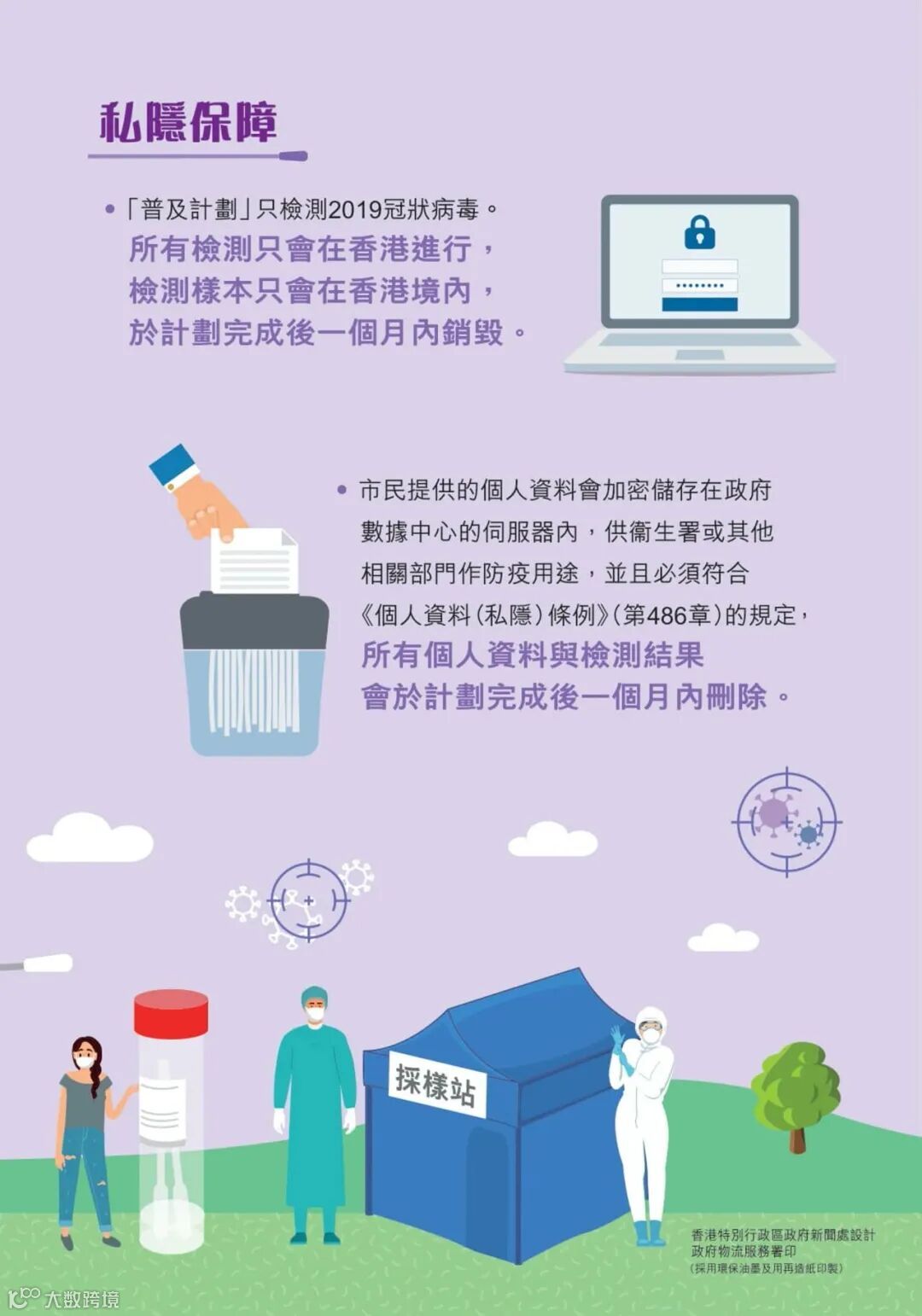 所有个人资料(包括检测样本与检测结果)不会传送至境外,工作流程亦不涉及将任何个人资料提供予境外机构或人士。