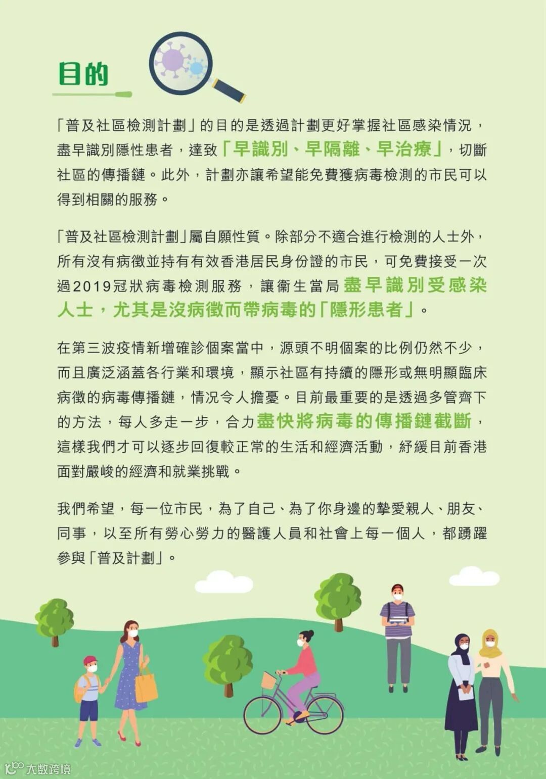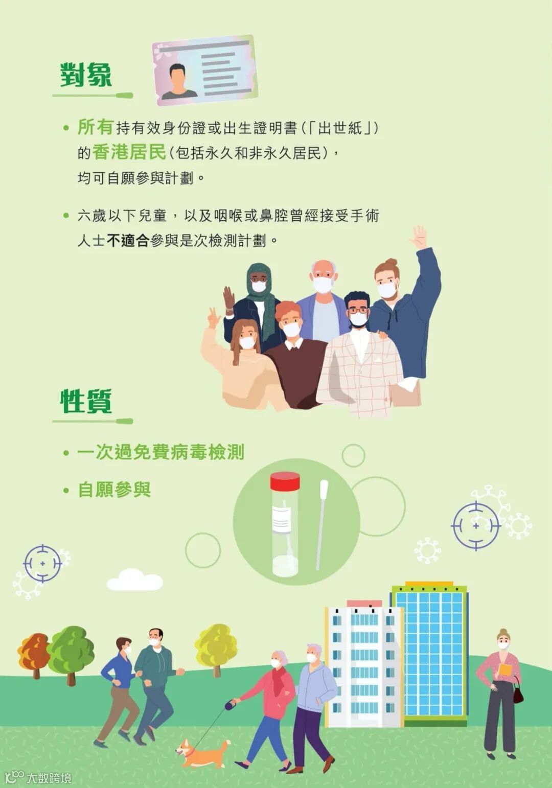 在普及社区检测计划下,所有持有效身份证或出生证明书(「出世纸」)的香港居民 (包括永久和非永久居民),均可自愿参与计划。