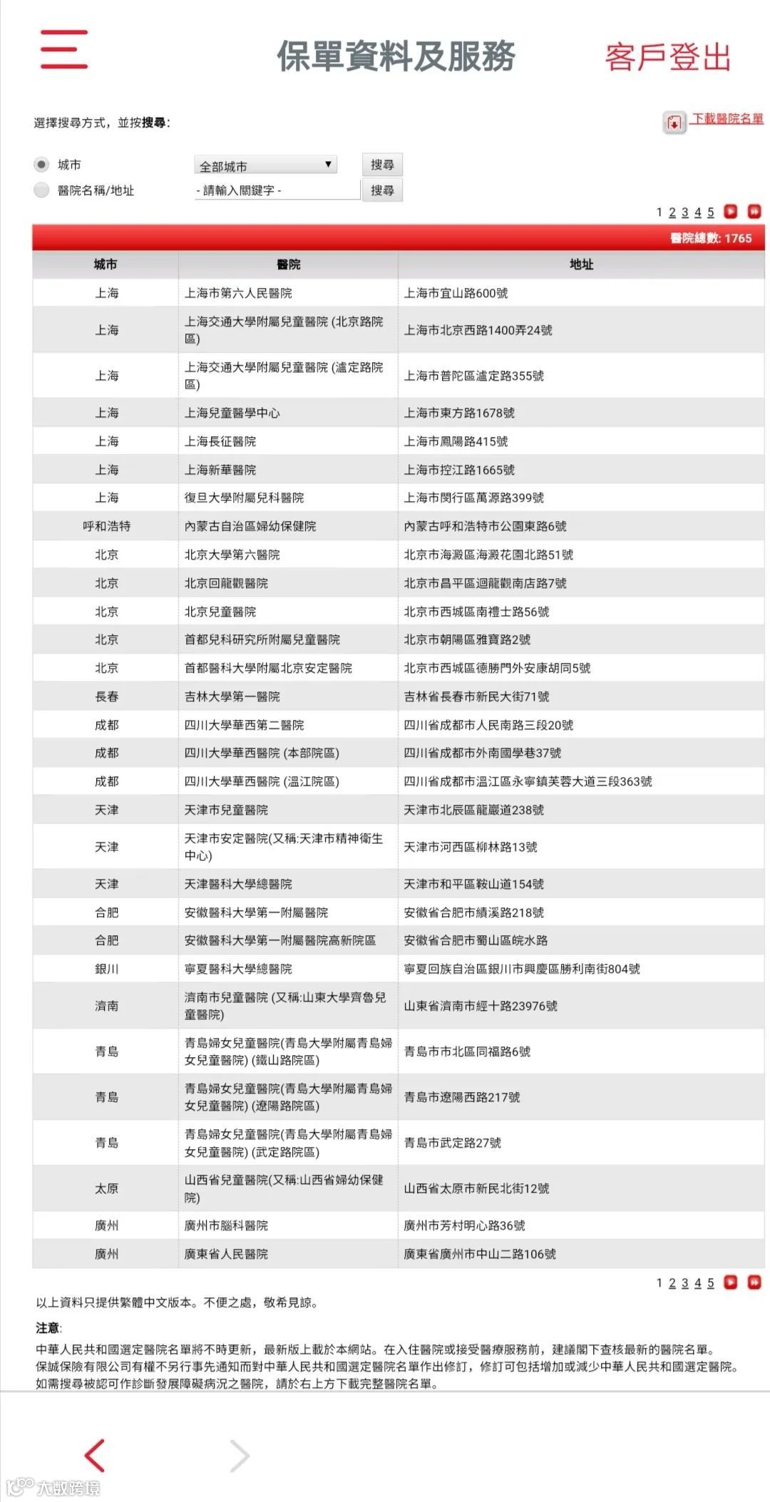中国内地各个城市的医院名单。