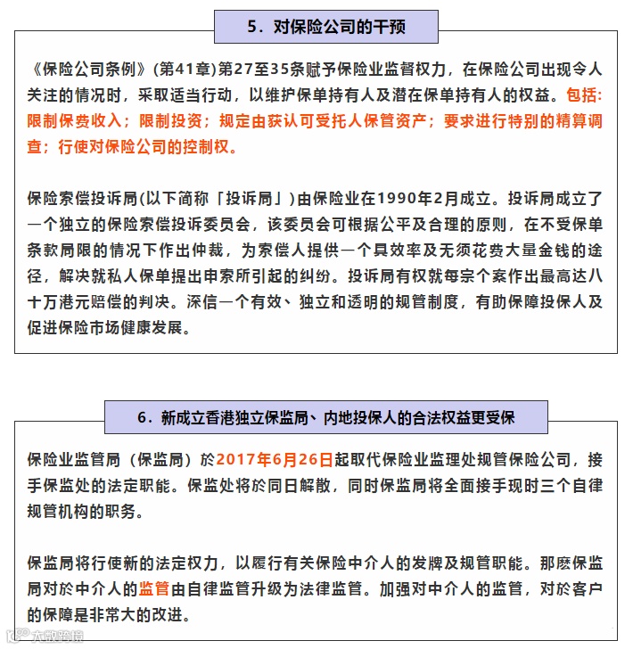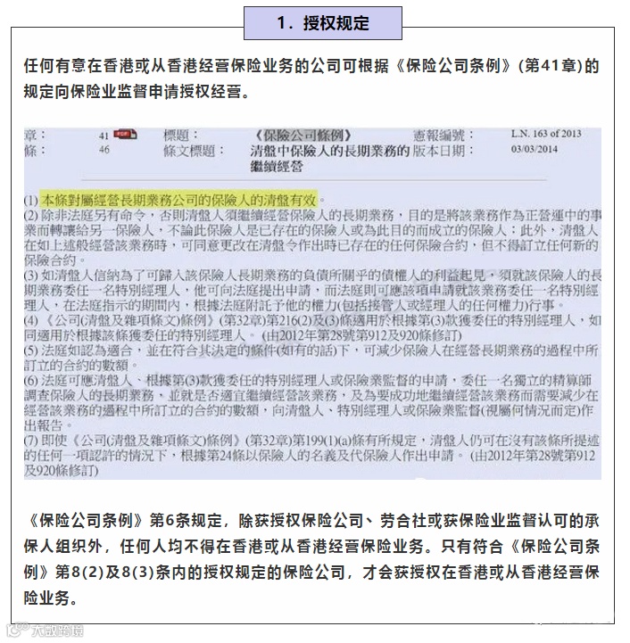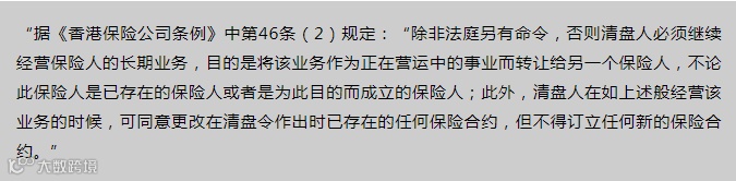 香港保监局规定经营不善的保险公司会有再保公司或者其他规模大的保险公司收购继续经营,以确保客户的权益。